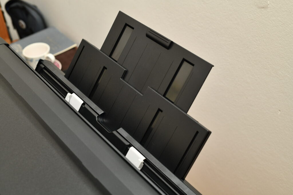 Depois que o arquivo começa finalmente a ser impresso, a velocidade é boa, mas inesperada. Imprimir fotos 10×15 não é tão mais rápido do que imprimir uma foto maior. A impressora gasta um tempo entre uma página e outra limpando as cabeças de impressão e esperando que a foto anterior seque um pouco. Alimentar o papel demora um pouco também, pois a impressora faz várias medições até garantir o alinhamento perfeito do papel. Imprimir sem borda também demora mais.