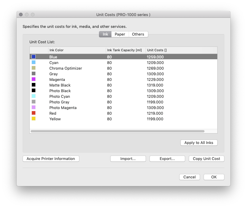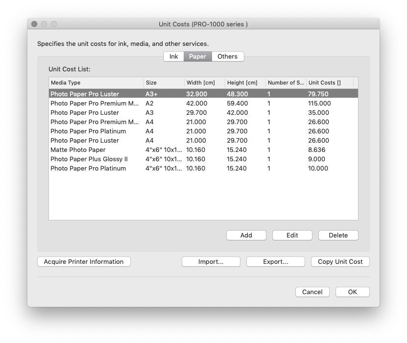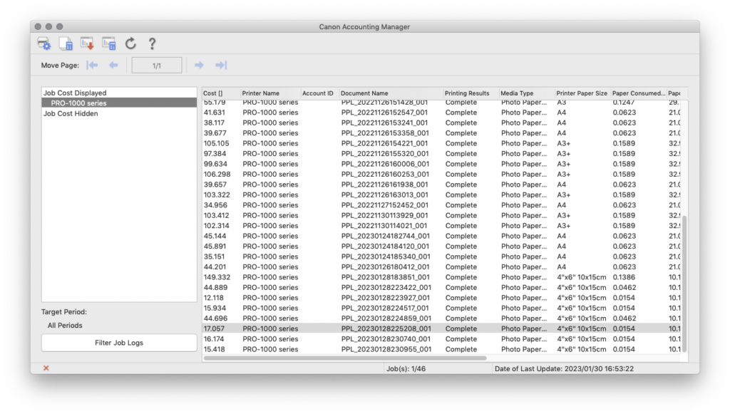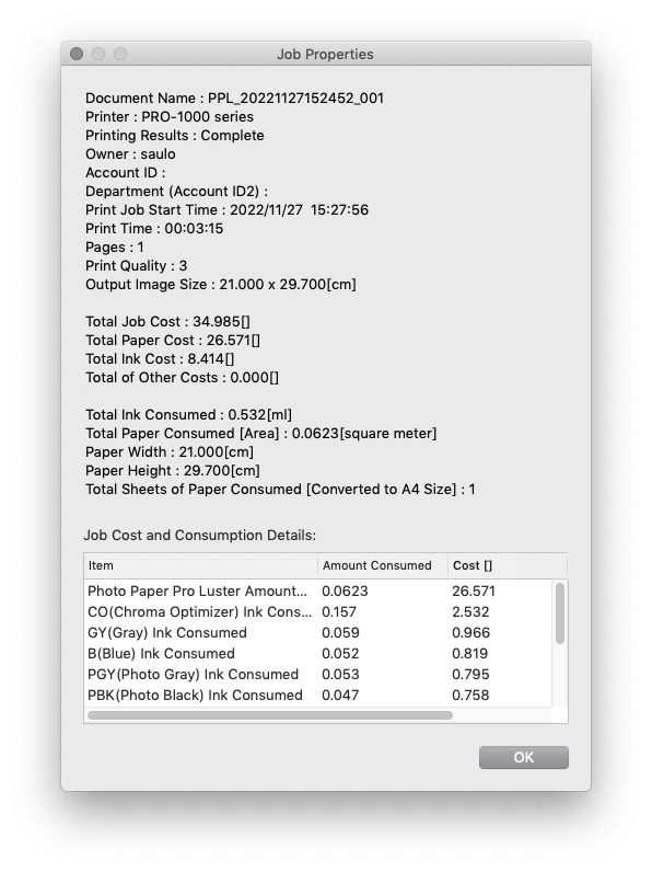 Em termos de consumo de tinta nas impressões propriamente ditas, a Canon fornece um ótimo programa para rastreamento dos custos, o Canon Accounting Manager.