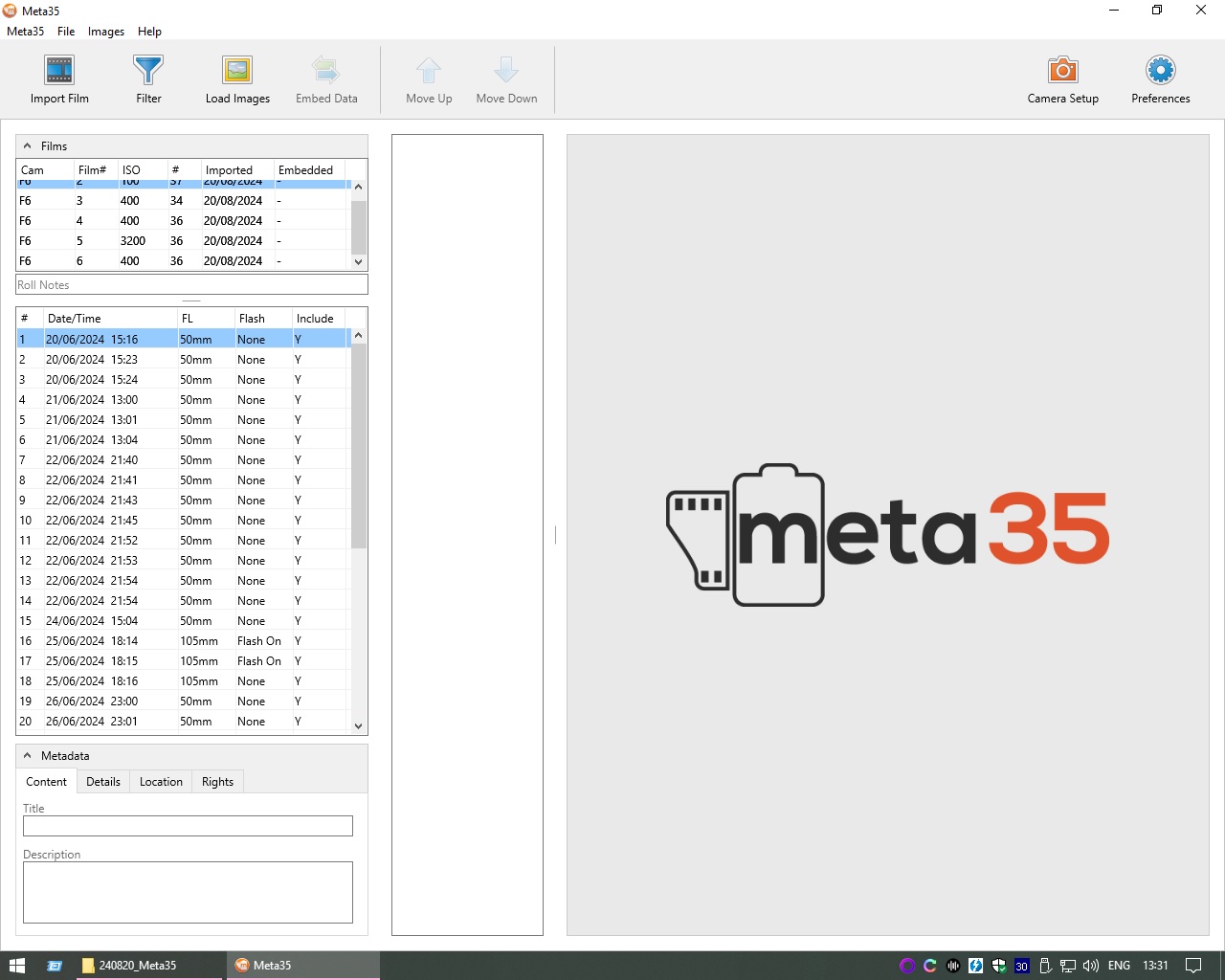 Eu criei uma nomenclatura que inclui os dados de cada pose então fica fácil associar o EXIF ao retrato. É muito comum não importar todas as fotos de um rolo, pois é um processo demorado e não faz muito sentido importar fotos que não tenham ficado boas.